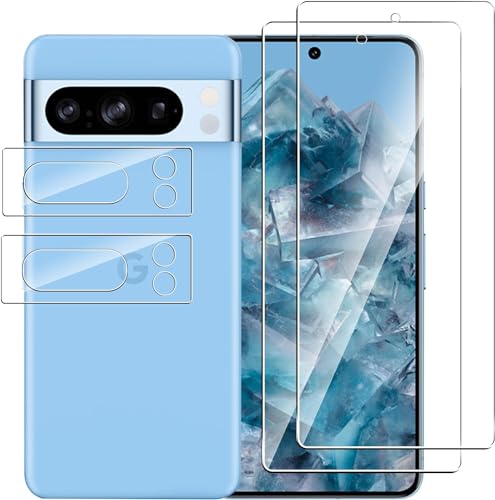 Effcotuo 2 Pezzi Pellicola Compatibile con Google Pixel 8 Pro Vetro Temperato 2 Pezzi Pellicola Fotocamera con Localizzatore Durezza 9H Senza Bolle AntiGraffio Protettiva