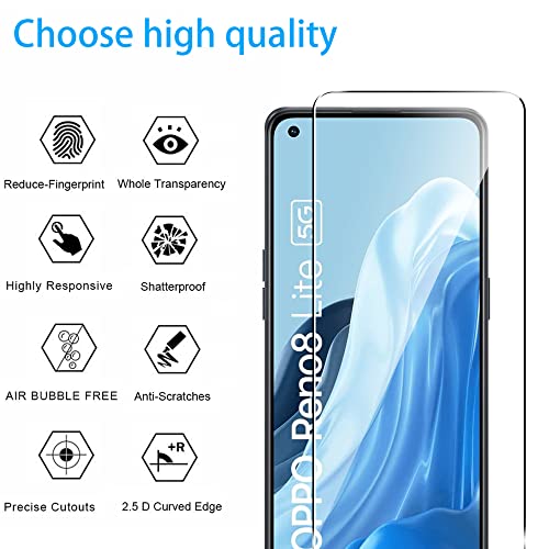 Effcotuo 2 Pezzi Pellicola Compatibile con OPPO Reno8 Lite 5G Vetro Temperato 2 Pezzi Pellicola Fotocamera Durezza 9H Senza Bolle AntiGraffio Protettiva per OPPO Reno 8 Lite 5G