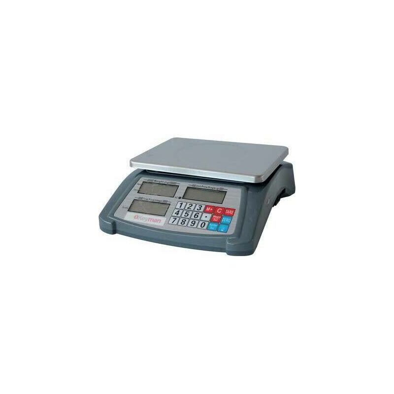 Con display LCD a 3 quadranti piu tastiera fronte operatore + 3 quadranti lato cliente. Piatto in ferro da Cm. 28x20. Triplice f