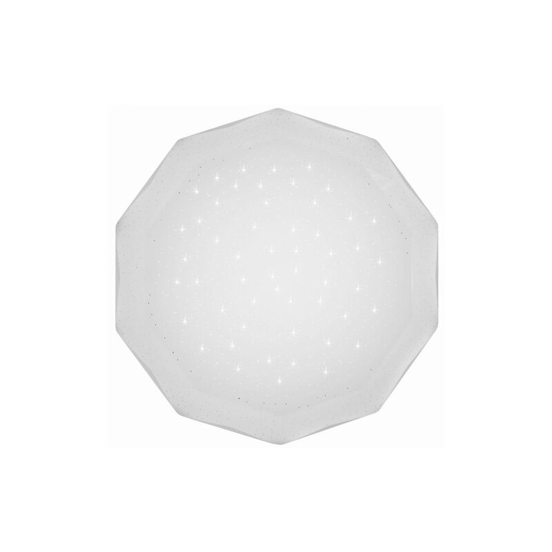 Paralume in acrilico bianco dalla particolare struttura tridimensionale con effetto cielo stellato visibile da acceso + base in metallo;