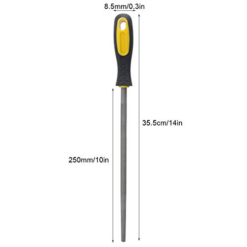 Più efficiente lima d'acciaio 25,4 cm Rasp Ergonomicamente PP & TPR Manico T12 Carbon Tool Steel,per ferro e acciaio, metalli non ferrosi, pelle (10 pollici grossolano dente tondo lima con maniglia)