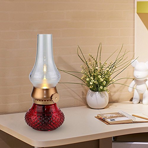 Efluky - Blowing Voice Control LED Lamp-USB senza fili ricaricabile LED Night Light lampada della candela, creativo cherosene lampada di olio di design con Dimmer chiave di controllo, per Indoor & Outdoor, la lettura, Camping (rosso)