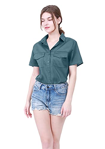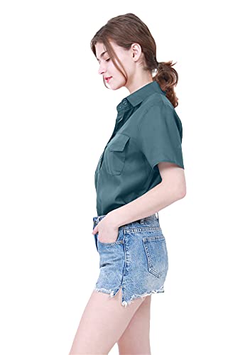 Camicia oxford a maniche corte abbottonata, camicetta da ufficio casual per donna. Adatto per appuntamenti, ufficio, lavoro, casa, attività all'aperto, feste, uscite casual.Puoi anche indossarlo con leggings o jeans.