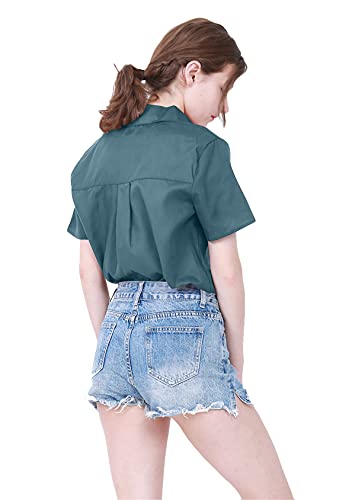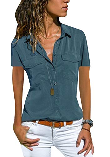 EFOFEI Camicetta da Donna Tinta Unita Camicia Casual Button Down da Donna Turchese XXL