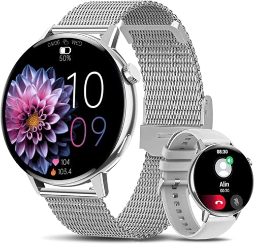 Efolen 2023 Smartwatch Donna Uomo, Smart Watch con Chiamate Orologio Intelligente Contapassi con Display 360 * 360, Orologio Sportivo per Android/iOS, Argento