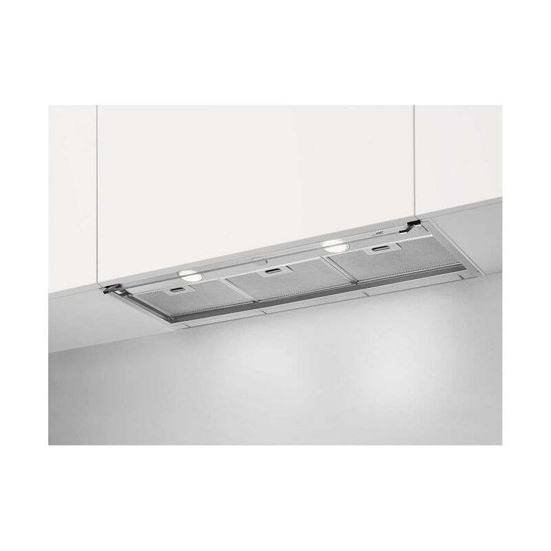 Electrolux EFP129X. Potenza massima di estrazione: 360 mⁿ/h, Tipo di estrazione: Aspirante/Filtrante, Classe di efficienza dinamica del fluido: D. Tipo: Integrato, Colore del prodotto: Acciaio inossidabile, Numero di lampadine: 2 lampadina(e). Tipo di filtro antigrasso: Alluminio, Numero di filtri: 3 pezzo(i). Classe efficienza energetica: C, Potenza motore: 125 W, Consumo energetico annuo: 51 kWh. Larghezza: 898 mm, Profondità: 299 mm, Altezza (max): 30,5 cm
