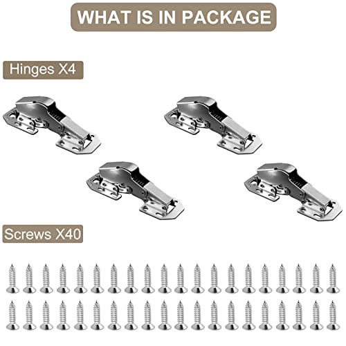 EFUTURETIME 4 x Cerniere Mobili Cerniere per Ante 90° Chiusura Morbida con Smorzamento Idraulico, 113×43 mm con 40 Viti per Porte Armadi Cucina Cerniere de Mobile da Bagno