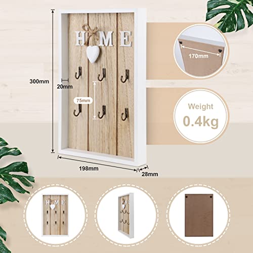 Efuturetime Portachiavi da Parete in Legno, 30 * 20 * 2.8cm, Cassetta Portachiavi da Muro con 6 Ganci per la Casa, Bianco, Modello HOME