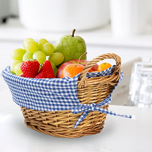 EGenuss 2 Cestini portapane in vimini naturale con maniglie laterali e fodera rimovibile in tessuto | Stile rustico colore BLU