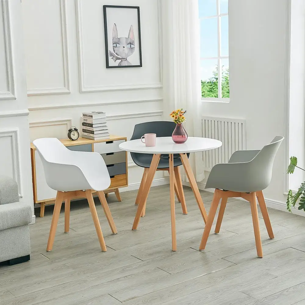 EGGREE White Round Dining Table with Solid Wooden Legs for Kitchen Room - 80 x 80 x 75 cm