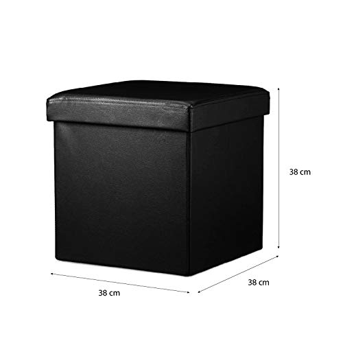 EGLEMTEK Pouf Panca Contenitore in Ecopelle con Coperchio (Nero)