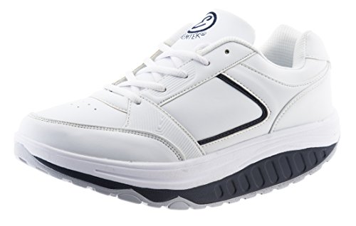 EGLEMTEK Scarpe Uomo Benessere Dimagranti Sportive Fitness BASCULAN TM (Bianco Navy New, 43)