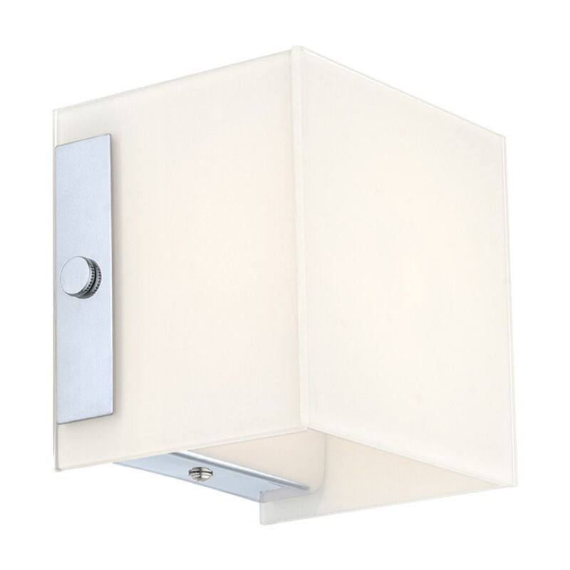 Cubo in vetro bianco con riporti cromo lucido - stile moderno;