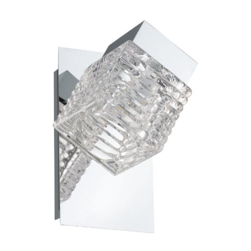 SPOT PER INTERNO ORIENTABILE DA PARETE IN CRISTALLO CON DETTAGLI IN ACCIAIO LUCIDO EGLO -92662- DIMENSIONI: 8X14CM;