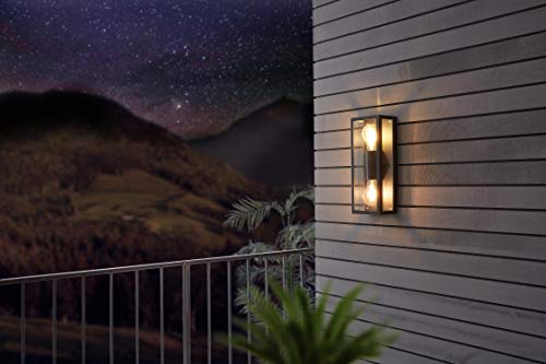 Eglo Alamonte 1 Lampada da Parete per Esterni a 2 Luci, in Acciaio Zincato, Vetro Trasparente, Attacco E27, IP44, Nero