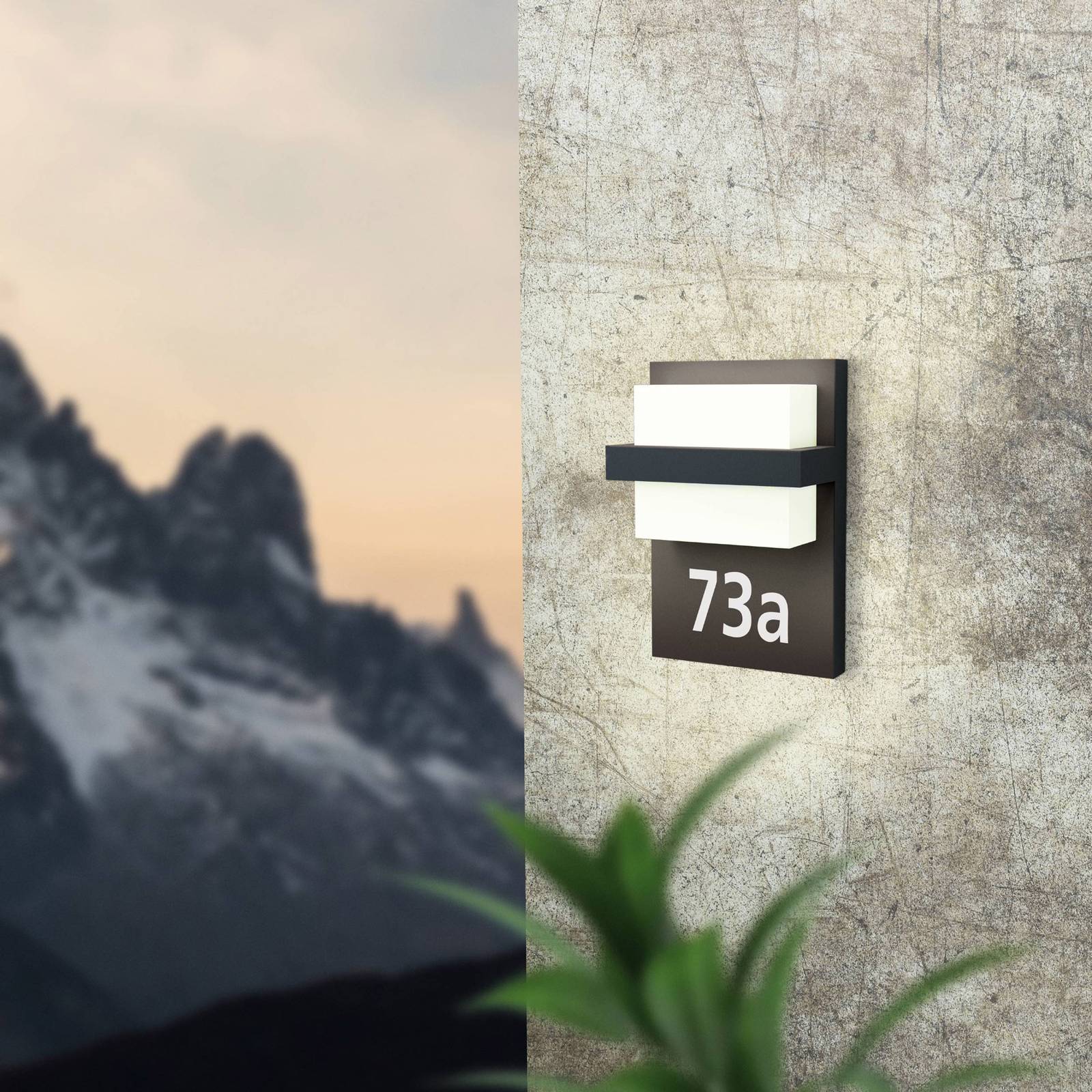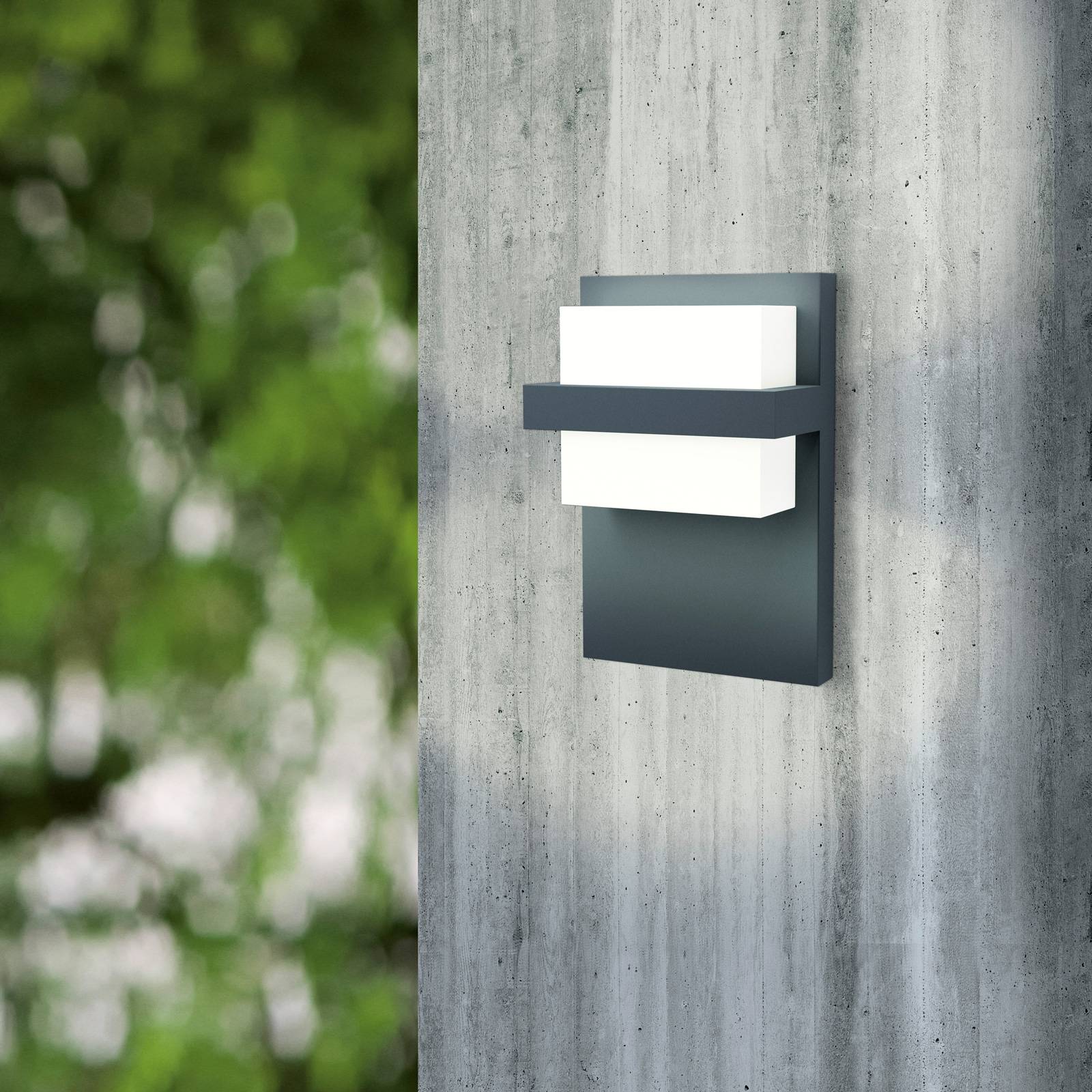 Applique da esterno a LED Culpina con angoli e bordi La lampada da parete a LED per esterni Culpina LED è stata progettata in modo coerente in forme angolari. Il suo corpo è in alluminio con verniciatura a polvere strutturata. Nella metà superiore della cornice metallica rettangolare si trova protetto e nella metà divisa da una staffa metallica il diffusore angolare in plastica bianca. Ciò garantisce una radiazione luminosa uniforme e priva di abbagliamento nell'area circostante. Culpina è una lampada da parete moderna e contemporanea non solo nella forma e nella colorazione, ma anche nell'illuminotecnica.