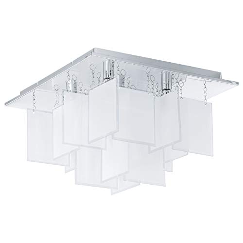 La lampada da soffitto in metallo cromato con una varietà di lastre di vetro satinato in bianco che garantiscono una piacevole luce indiretta, si inte