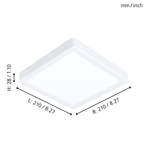 La plafoniera quadrata Smart Home Led in metallo in bianco con una superficie illuminata in plastica bianca può essere controllata con l'aiuto del Bluetooth tramite app e tramite il telecomando connect.z disponibile separatamente (EGLO 99099);