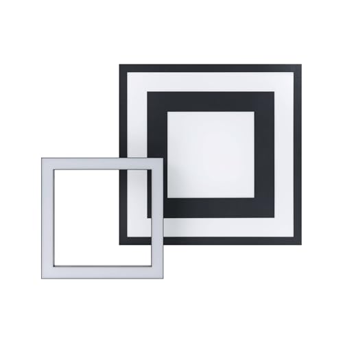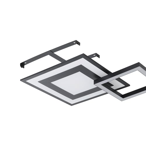 La plafoniera Smart Home Led in metallo nero con una superficie luminosa quadrata in plastica bianca con l'aggiunta di un elemento luminoso regolabile fino a 355° può essere controllata con l'aiuto del Bluetooth tramite app e tramite il telecomando connect.z disponibile separatamente (EGLO 99099);
