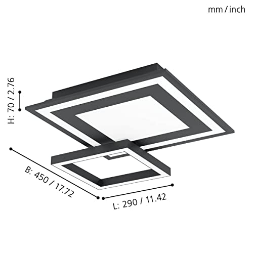EGLO connect.z Smart Home Led pannello Savatarila-Z, ZigBee, app e controllo vocale, colore luce regolabile, dimmerabile, lampada da soffitto in metallo nero