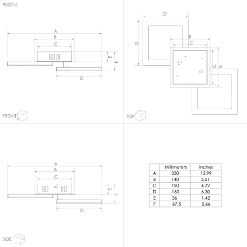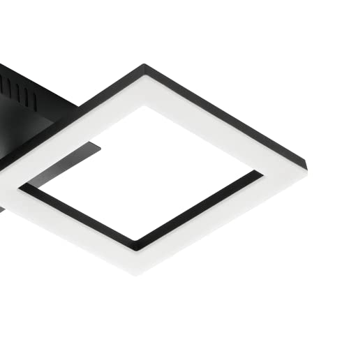 La luce LED Smart Home per il soffitto in acciaio nero con due superfici luminose quadrate ruotabili in plastica bianca può essere facilmente impostata e controllata via Bluetooth con l'app gratuita AwoX e il telecomando disponibile separatamente (EGLO 99099)