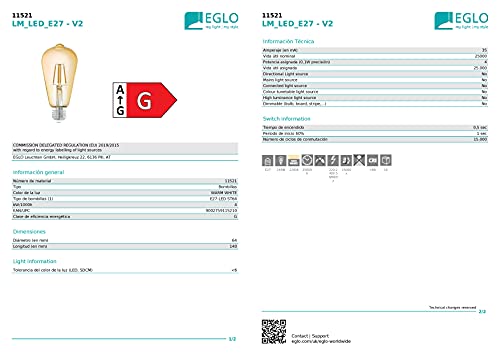 EGLO Lampada Led E27, lampadina vintage ambra per illuminazione retrò, quattro watt (equivalenti a 22 watt), 220 lumen, Led E27 bianco caldo, 2200 Kelvin, lampadina Edison ST64, diametro 6,4 cm