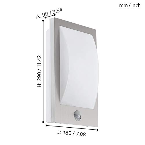 Eglo Lampada da parete per esterni Verres, 1 luce, con sensore di movimento, lampada da parete con sensore in acciaio inox e plastica, colore: argento, bianco, IP44