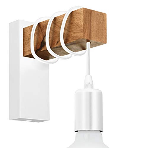 EGLO Lampada da parete Townshend, plafoniera vintage a uno punto luce, lampada da parete dal design industriale, lampada retrò in acciaio e legno, bianco, marrone, E27