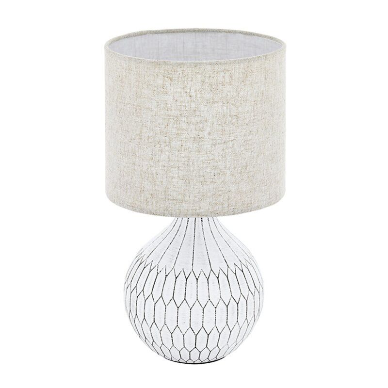 Collezione Bellariva 3 LA LAMPADA CHE AFFASCINA La lampada da tavolo BELLARIVA composta da una base grigia in ceramica arrotondata in stile boho di tendenza corredata di un paralume rotondo in stoffa bianca.. Questa accogliente lampada da tavolo si armonizza perfettamente in arredi moderni e costituisce un punto forte per gli amanti dei dettagli e i fan di motivi e strutture. Inoltre, è possibile accendere e spegnere la lampada comodamente tramite un interruttore presente sul cavo. Offre un'illuminazione confortevole in qualsiasi ambiente, che sia sul comodino della camera da letto, nel soggiorno, nella sala da pranzo o nel corridoio. La lampadina non è inclusa nella consegna. Per la lampada è adatta qualsiasi lampadina con attacco E27.