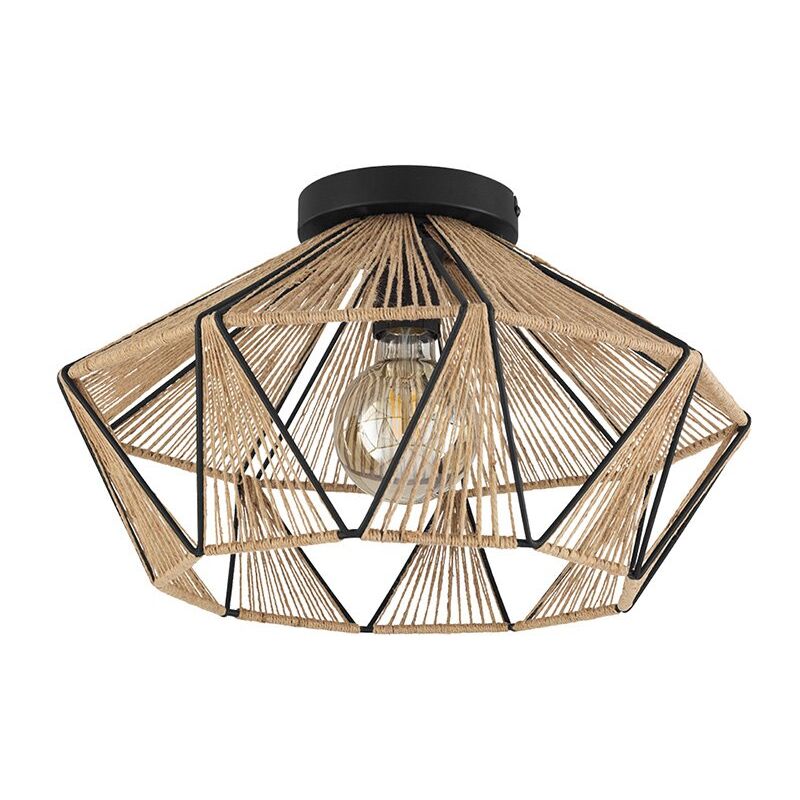Collezione Adwickle LA LAMPADA GEOMETRICA CHE ARREDA La plafoniera ADWICKLE è composta da un paralume in delicato reticolato nero a forma di diamante avvolto da filato di canapa dal colore naturale.. Grazie al paralume geometrico si crea un intrigante gioco di luci e ombre quando la lampada è accesa. La plafoniera dal mix moderno di metallo e materiale naturale offre un'illuminazione elegante per ogni ambiente, che sia nella cucina, nel soggiorno, nella camera da letto o nel corridoio. La lampadina a filamento presente nell'immagine non è inclusa nella consegna. Per la lampada è adatta qualsiasi lampadina con attacco E27.
