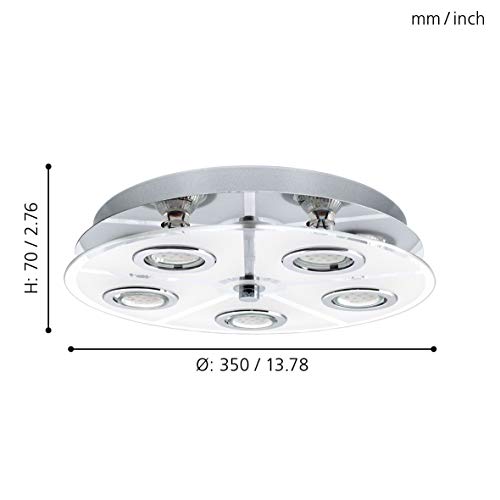 Eglo Lampada da soffitto a LED Cabo, a 5 luci, in acciaio inox e vetro satinato, lampada da soggiorno in cromo bianco, trasparente, lampada da cucina,