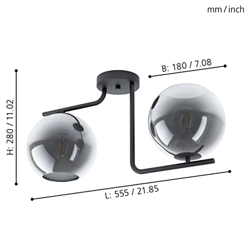 EGLO lampada da soffitto Marojales, 2 luci elegante, soffitto lampada da soggiorno in metallo in nero, sfere di vetro in nero-trasparente al vapore, attacco E27