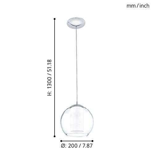 Eglo Lampada A Sospensione Bolsano, Con Attacco E27. In Acciaio E Vetro Cromato, Bianco, Trasparente