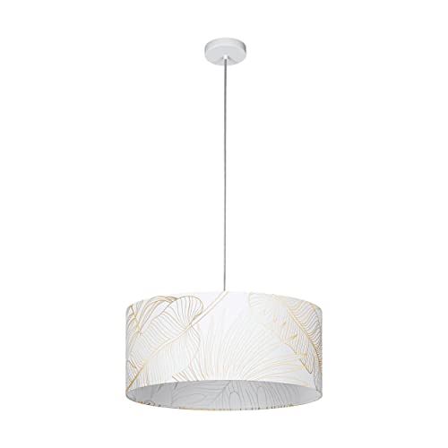 EGLO lampada a sospensione Bucamaranga, luce sospesa rotonda in tessuto, illuminazione per soggiorno e sala da pranzo in tessuto bianco con decoro in oro, attacco lampadina E27