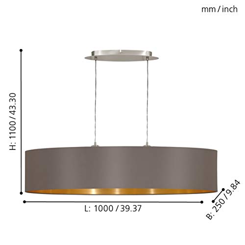 EGLO La lampada a sospensione Maserlo, in tessuto a due punti luce, lampada a sospensione ovale in acciaio e tessuto, nichel opaco, cappuccino, oro, attacco E27, L 100 cm