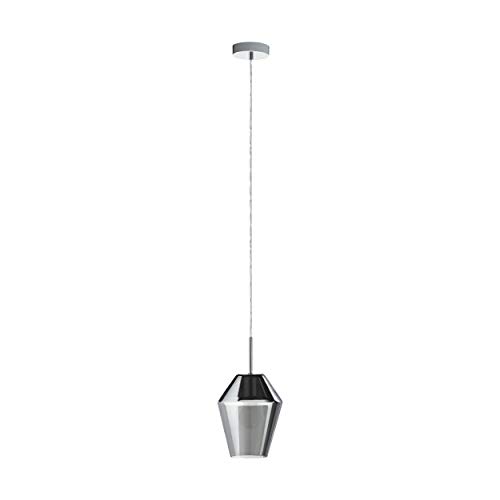 Eglo Lampada a sospensione Murmillo, 1 lampada a sospensione moderna, in acciaio cromato e vetro nero trasparente, lampada da tavolo da pranzo, lampad