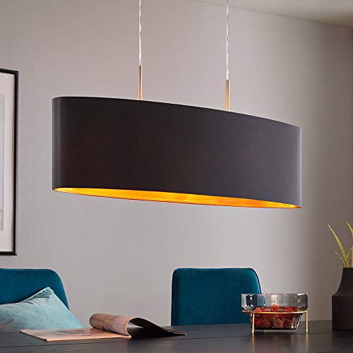 Eglo - Lampada a sospensione Pasteri a 2 luci, in tessuto a sospensione, ovale, in acciaio e tessuto, colore: Nichel opaco, nero, rame, attacco: E27, L: 75 cm
