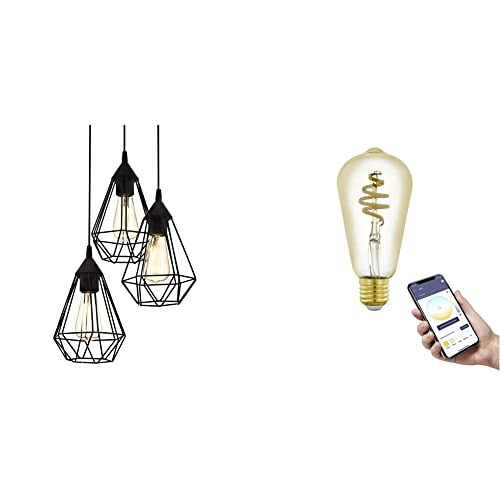 Eglo Lampada a sospensione vintage Tarbes, incl. 3 lampadine retro Smart Home connect.z E27, luce a sospensione LED industriale dimmerabile in acciaio nero, Ø 31 cm, bianco caldo-bianco freddo
