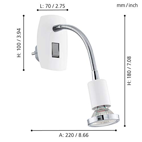 Eglo, Lampada LED con spina integrata e interruttore lampadina inclusa, classe di efficienza energetica A+, 200 lumen, 3000 kelvin, attacco GU10