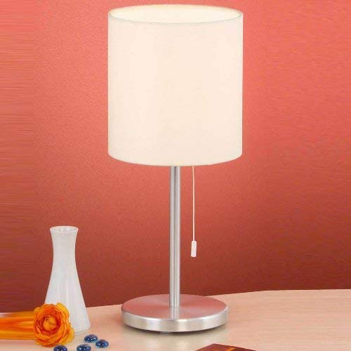 Eglo - Lampada da tavolo, Alluminio, E27, in alluminio spazzolato/Beige, 16 x 16 x 37.5 cm