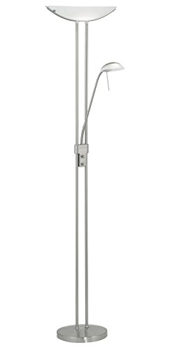 EGLO La lampada da terra in metallo nichelato opaco con due paralumi in vetro bianco si integra ideale ad interni moderni e classici