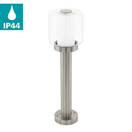 EGLO Lampada a vela per esterni, Poliento, 1 luce, lampada da terra, in acciaio inox, plastica e vetro, colore: argento, bianco, attacco: E27, IP44