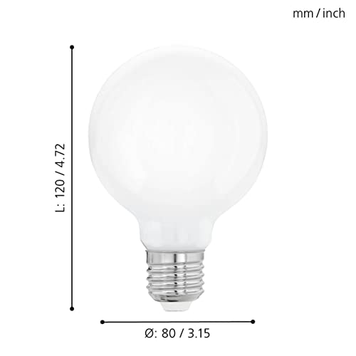 EGLO E27 LED, lampadina opalina a globo, 7 Watt (equivalente a 60 Watt), 806 Lumen, luce bianco caldo, 2700k, lampadina G80, Ø 8 cm