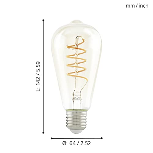 EGLO LED E27, lampadina a spirale, lampada vintage ambrata per illuminazione retrò, 4 Watt (equivalente a 26 Watt), 270 Lumen, illuminante bianco caldo, 2200k, Edison ST64, Ø 6,4 cm