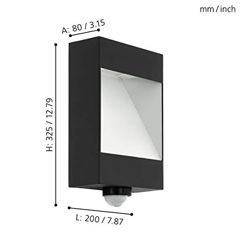 Eglo Manfria Lampada da Parete a LED per Esterni, con Sensore in Alluminio, IP44. con Sensore di Movimento, Antracite, Bianco