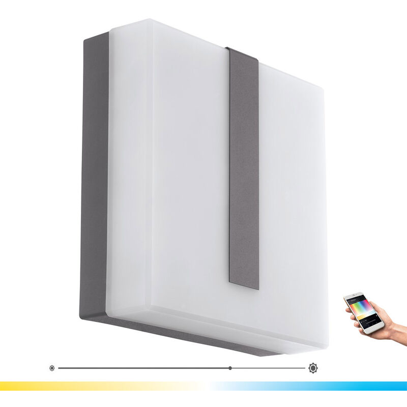 LED parete esterna della lampada Torazza-C antracite satinato L: 21,5 centimetri H: 21,5 centimetri D: 7cm IP44 Siete alla ricerca di una facile installazione e dispositivi semplici - sono nel nostro EGLO Collegare varia esattamente . correttamente Per iniziare è veloce e semplice, hanno solo bisogno di due componenti: una luce EGLO Connect o a Collegare lampade telecomando a EGLO Connect o il controllo app gratuita AwoX intelligente Even're pronti a partire! sono la vantaggi fondamentali del sistema facile da installare: EGLO prodotti di connessione utilizzano la tecnologia Bluetooth e non richiedono installazioni complesse Tecnologia Smart: .. I prodotti EGLO Connect comunicano tra di loro e formano una rete scalabile intelligente (MESH Technology) rete protetta Tutti EGLO prodotti di connessione in casa formano una rete chiusa e sono protetti da accessi non autorizzati luci EGLO Connect o lampade sono adatte per uso interno ed esterno. Essi controllano la vostra in qualsiasi