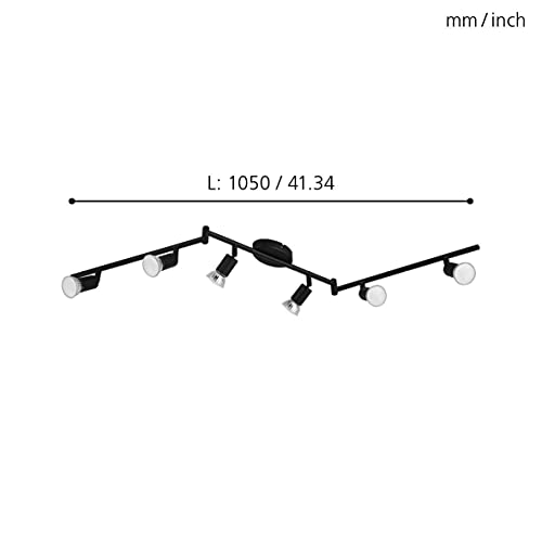 EGLO Plafoniera Led Buzz-Led, lampada da soffitto a 6 fiamme, faretto da soffitto in metallo, lampada da soggiorno in nero, lampada da cucina, spot Led con presa GU10, L 105 cm