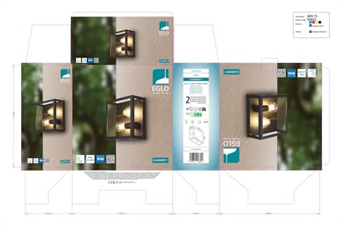 EGLO Plafoniera da esterno Alamonte 1, lampada da esterno due punti luce, plafoniera in acciaio zincato, nero, trasparente, E27, IP44