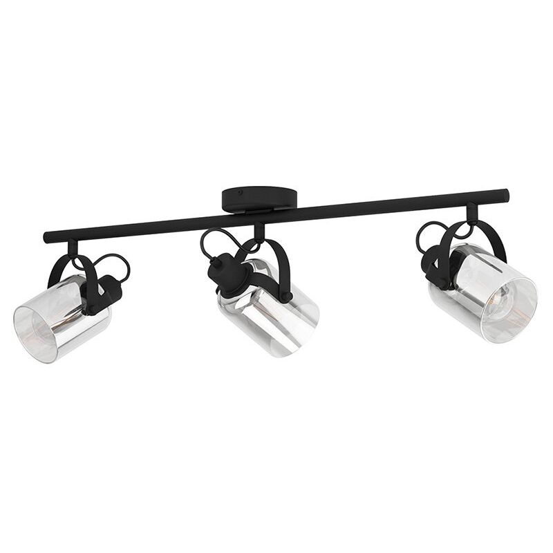 Collezione Berregas ILLUMINA I TUOI PUNTI PREFERITI CON LA LAMPADA VERSATILE La plafoniera BERREGAS è realizzata in metallo nero strutturato con tre faretti mobili in vetro vaporizzato nero-trasparente (fumé).. Questo plafone si armonizza perfettamente con stili di arredo moderno e, grazie alle sue teste regolabili, è ideale per tutti gli ambienti, che si tratti della cucina, del soggiorno, della camera da letto, del corridoio o della sala da pranzo. Le lampadine non sono incluse nella consegna. Per la lampada è adatta qualsiasi lampadina con attacco E27.