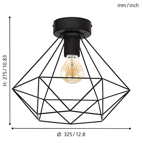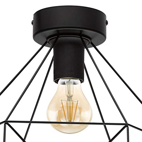 EGLO Plafoniera Tarbes, lampada a sospensione a uno punto luce vintage, plafoniera in stile retrò, acciaio, nero, E27